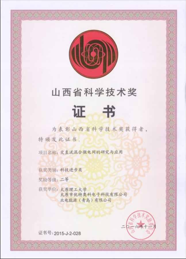 我公司與太原理工大學建立了長期的產(chǎn)學研合作機制,合作完成了國家國際科技合作項目“含分布式電源的微電網(wǎng)運行與優(yōu)化控制的合作研究”,其成果“交直流混合微電網(wǎng)的研究與應用”經(jīng)山西省科技廳組織鑒定,專家意見為具有國際先進技術(shù)水平。并獲得了2015年度山西省科技進步二等獎。