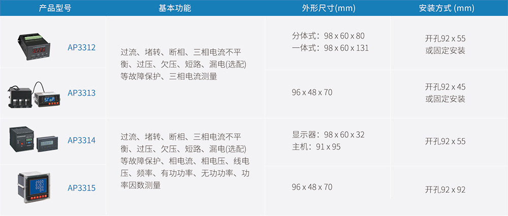 AP331系列智能型馬達(dá)保護(hù)器適用于AC380V、 AC660V低壓系統(tǒng),裝置基于微機(jī)處理器技術(shù),采用現(xiàn)場(chǎng)總線結(jié)構(gòu),是低壓異步電動(dòng)機(jī)和增安型電動(dòng)機(jī)的保護(hù)、監(jiān)測(cè)和控制的新一代智能化綜合裝置。 除了電動(dòng)機(jī)保護(hù)、監(jiān)控功能,還提供了設(shè)備運(yùn)行和跳閘的記錄以及額定參數(shù)等重要信息,為現(xiàn)代化的設(shè)備管理帶來(lái)很大的便利。廣泛用于石油、化工、電力、冶金、煤炭、輕工、紡織等行業(yè)。