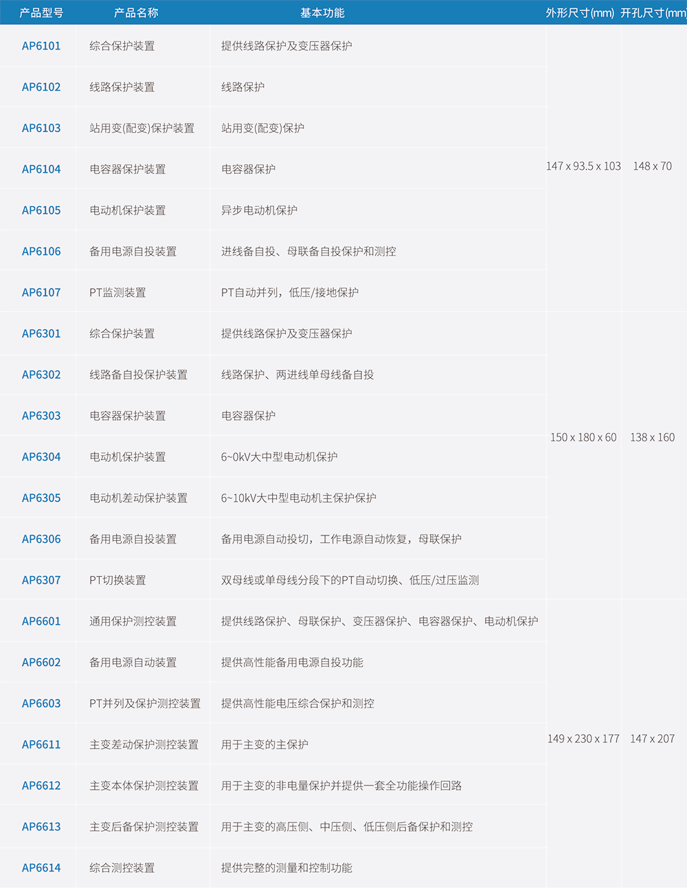 AP6000系列微機(jī)保護(hù)測控裝置是優(yōu)特奧科為適應(yīng)我國工業(yè)電氣自動(dòng)化發(fā)展的需要,積累多年電力自動(dòng)化運(yùn)行經(jīng)驗(yàn),向廣大用戶推出的集保護(hù)、測量、控制、通訊于一體的高性能保護(hù)測控裝置,廣泛適用于110kV及以下電壓等級變電站、開關(guān)站及用戶配變電站的新建與改造工程。
