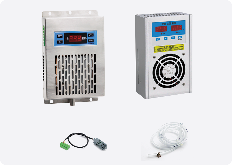 AP322系列智能型除濕裝置是采用半導(dǎo)體制冷除濕方式,主動(dòng)將密閉空間的潮濕空氣在風(fēng)扇的作用下吸入除濕風(fēng)道,空氣中的水汽經(jīng)過半導(dǎo)體制冷機(jī)構(gòu)后冷凝成水,再通過導(dǎo)水管排出柜體,可以達(dá)到很好的除濕效果。通過減低空氣中含水量,使相對(duì)濕度和絕對(duì)濕度同時(shí)下降,幾乎不提高溫度,不產(chǎn)生溫差帶來的負(fù)面影響,減少了事故的發(fā)生,也不會(huì)因高溫而加速柜內(nèi)器件及柜體的老化。智能型除濕裝置把被動(dòng)防止凝露方式改為主動(dòng)引導(dǎo)凝露,有效的防止柜內(nèi)設(shè)備老化、絕緣強(qiáng)度降低、二次端子擊穿、材料霉變及鋼結(jié)構(gòu)件銹蝕等安全隱患,保證電網(wǎng)安全運(yùn)行。